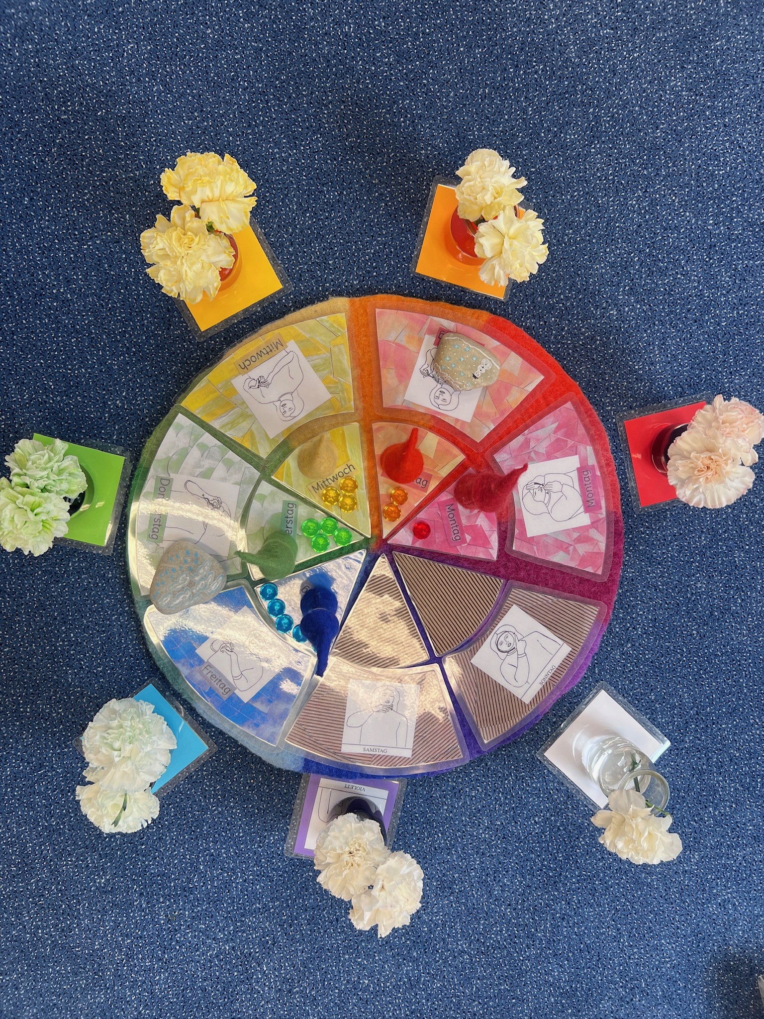 Jeden Morgen beginnen wir mit unserem Morgenkreis–wir singen, sprechen darüber wie es uns geht, über das Wetter usw. Einmal die Woche dürfen die Kinder dazu ein Spielzeug mitnehmen.