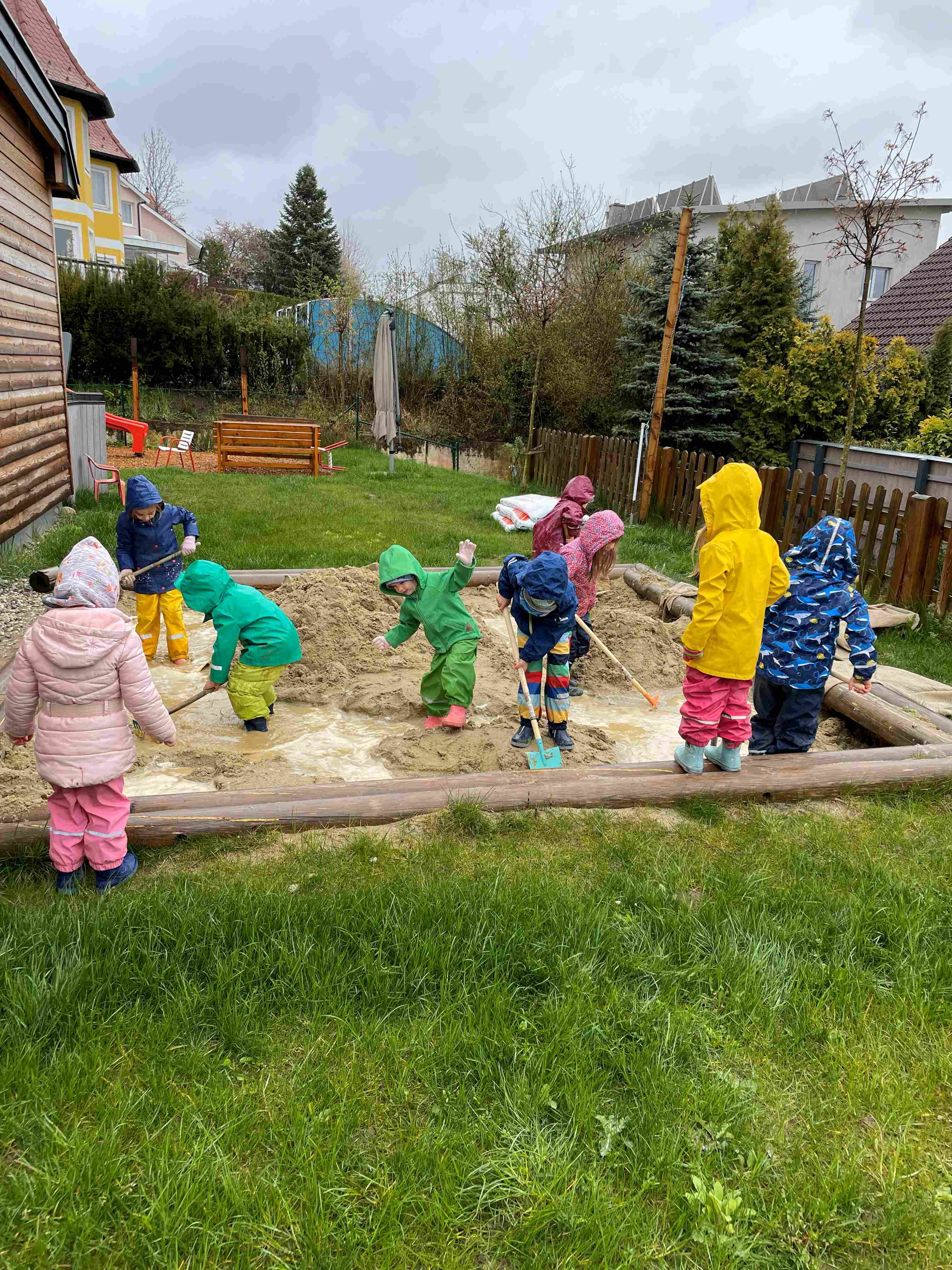Oft sind wir im Garten und in der freien Natur rund um unseren Kindergarten anzutreffen. Von Wind und Wetter lassen wir uns dabei nicht abhalten.
