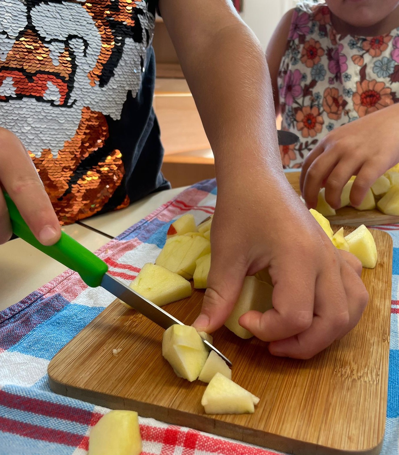 Ein fixer Bestandteil ist auch unser Kochtag, wo wir gemeinsam saisonale Speisen zubereiten. Hier wird geschnibbelt, geknetet, gerührt und zum Schluss genussvoll zusammen verspeist.